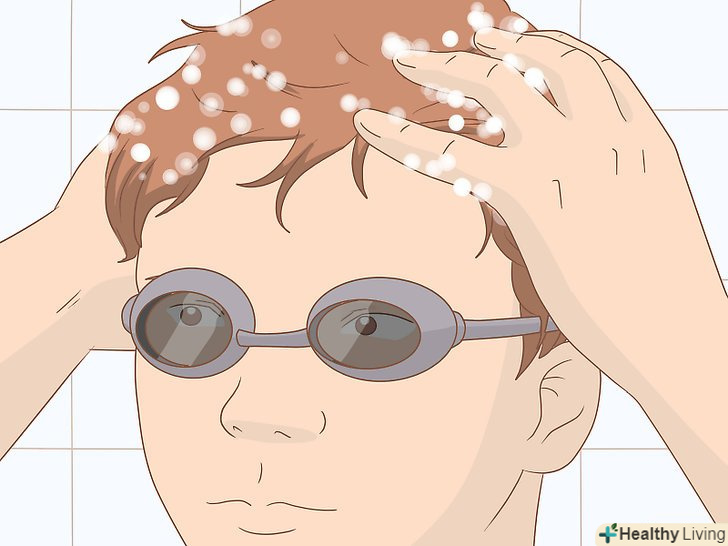 Одягніть захисні окуляри. [10] якщо вам в очі часто потрапляє шампунь і викликає сильне роздратування, приймаючи душ, надягайте захисні окуляри. Доброю ідеєю буде покупка окулярів для плавання в магазині спортивного інвентарю. Одягайте їх кожен раз, коли будете мити голову, і знімайте, коли повністю змиєте шампунь — таким чином ви зможете спокійно помити голову і вимити обличчя.