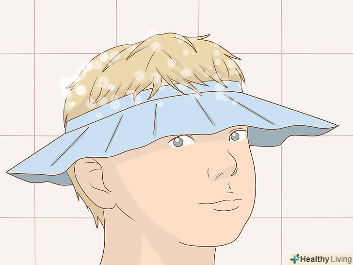 Можна скористатися захисним козирком для очей. козирок для очей нагадує кепку з маленькою кришкою, як козирок для гри в гольф. Одягніть очної козирок на голову так, щоб край щільно прилягав до чола. Одягніть його, коли будете приймати душ, тоді піна буде скочуватися з боків від скронь або по краю козирка. [11] такі козирки особливо корисні для маленьких дітей, щоб шампунь не потрапляв їм в очі.