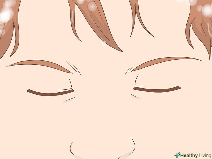 Заспокойтеся. коли Вам в очі потрапляє шампунь, з'являється відчуття печіння і роздратування. Через біль ми часто починаємо впадати в паніку. Тому збереження спокою гарантує, що ви не зробите нічого, що погіршить ситуацію. Є кілька способів заспокоїтися, поки ви приймаєте душ, але один із способів зберегти спокій в даній ситуації — почати глибоко дихати і контролювати своє дихання. [1] зосередьте увагу на процесі вдиху і видиху. Спробуйте трохи сповільнити дихання, глибоко і повільно вдихаючи (на рахунок 5), а потім видихайте протягом наступних 5 секунд. Виконайте цю вправу хоча б три рази.- Можна також уявити себе де-небудь в спокійному умротворенном місці, де вам нічого не загрожує, де ви в повній безпеці. Наприклад, спробуйте уявити себе посеред гірської стежки. Спробуйте уявити відчуття легкого вітерця на своєму обличчі і ніжне сонячне тепло на шкірі.