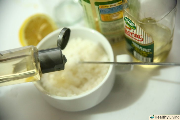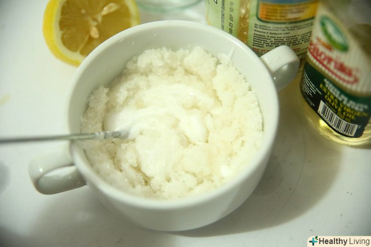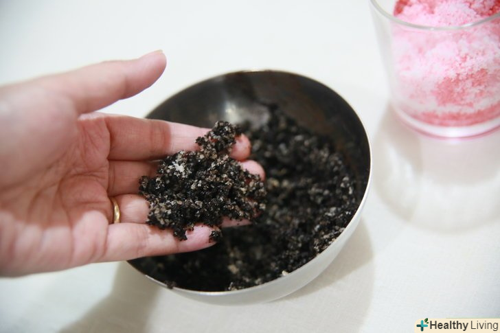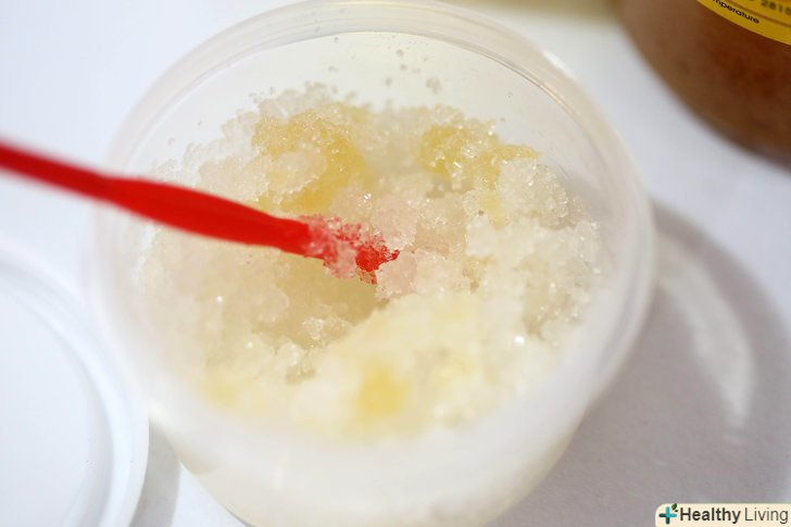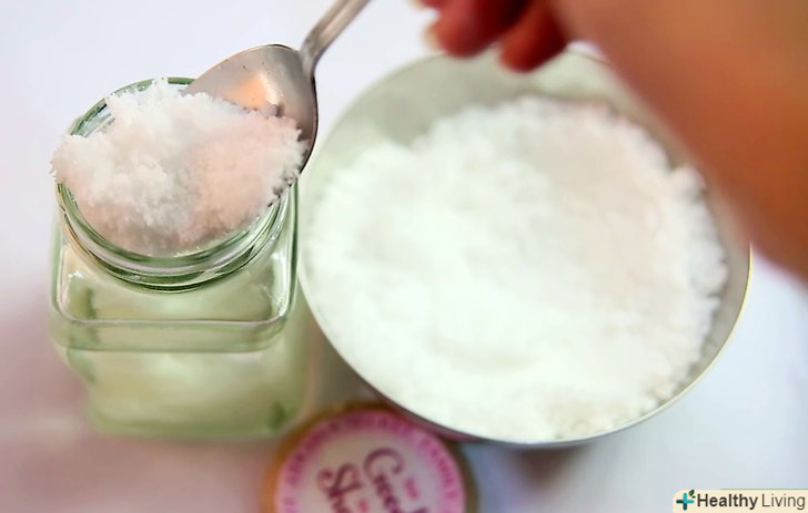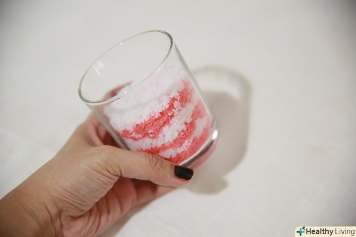 Виберіть сіль. у сольовому скрабі сіль використовується як ексфоліант (відлущуючий засіб), який видаляє омертвілі клітини шкіри, роблячи її м'якою і гладкою. Можна використовувати кілька типів солей, включаючи їдальню, морську, Гімалайську, кухонну, англійську, а також сіль Мертвого моря.- Морська і англійська солі є найбільш популярними варіантами для подібних скрабів. Однак не настільки важливий тип солі, як її помел. Для сольового скрабу вибирайте дрібну мелену сіль, замість великої, тому що вона краще підходить для відлущування.