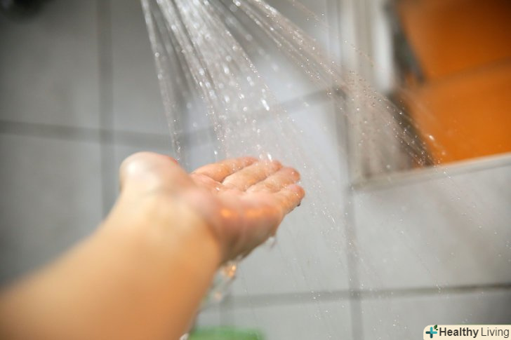 Намочіть шкіру. наповніть ванну або включіть душ. Заскочіть туди на кілька хвилин і дочекайтеся, поки шкіра не стане м'якою і вологою. Так вам буде простіше розподіляти засіб по тілу.- Щоб відлущити тільки шкіру рук або ніг, наповніть відро або миску водою і потримайте в ній ноги або руки протягом декількох хвилин.