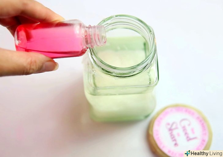 Змішайте інгредієнти. знайдіть скляну банку з герметичною кришкою для зберігання скрабу. Насипте сіль в контейнер, а потім додайте базове масло. Фінальним акордом можуть бути кілька крапель ефірних масел або ароматичних добавок. Лийте, поки не досягнете бажаного аромату і інтенсивності. Добре перемішайте суміш перед використанням. [4]