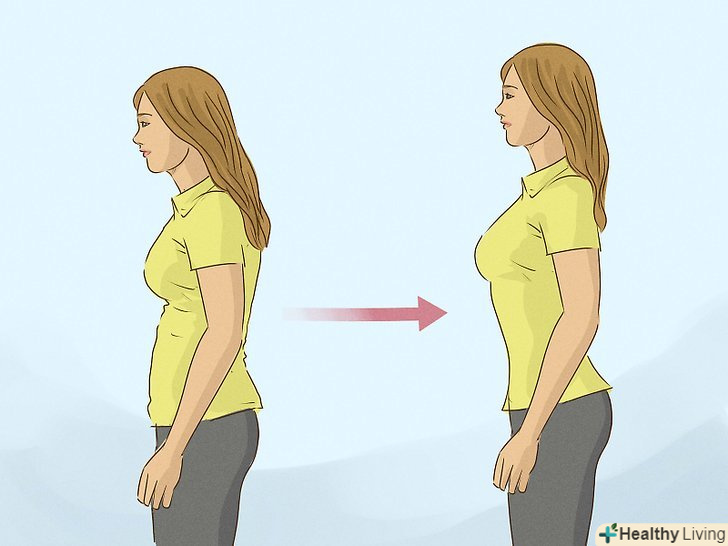 Слідкуйте за поставою. відводьте плечі назад, витягайте голову вгору. Якщо зловите себе на тому, що сутулитеся або дивіться в землю, нагадайте собі про необхідність випрямлятися і дивитися людям в очі. Хороша постава додає впевненості в собі, завдяки чому ви будете виглядати привабливіше. Крім того, правильна постава допоможе вам бути уважнішими і відчувати себе енергійніше. [16]- Сидячи за робочим або обіднім столом, відводите плечі назад і злегка вигинайте спину в попереку. Це природне положення хребта. Підкладайте під спину спеціальні ортопедичні подушки і під час відпочинку. [17]