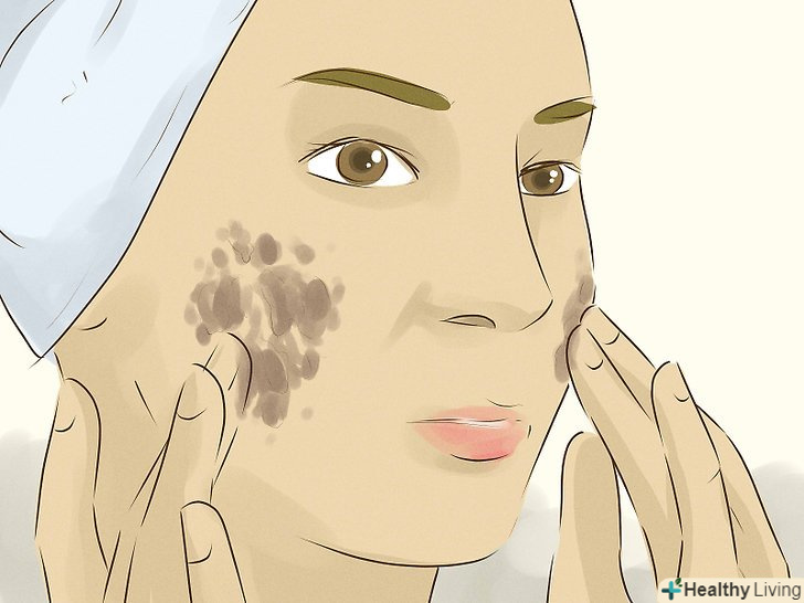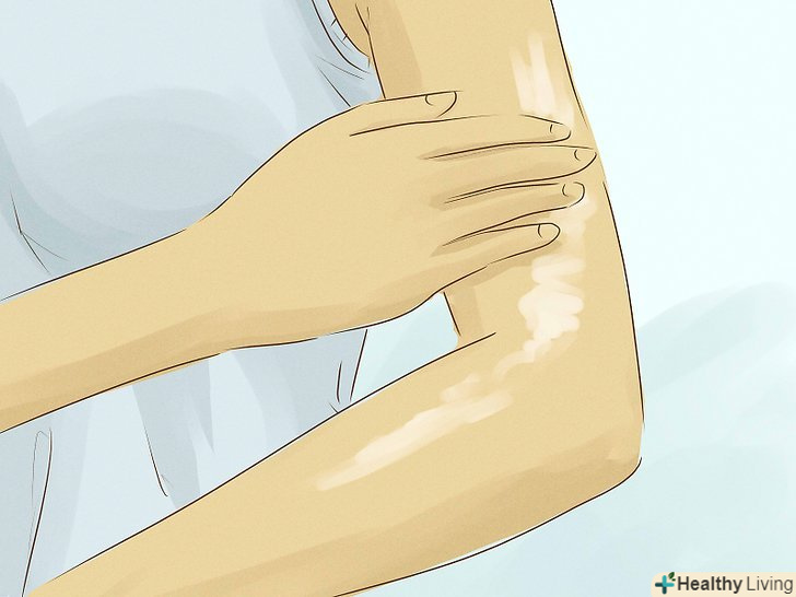 Користуйтеся скрабомКожні 1-2 тижні, щоб видалити мертві клітини. якщо у вас тьмяна шкіра, скраб дозволить видалити з поверхні шкіри відмерлі частинки. Намочіть губку для вмивання і акуратно потріть лоб, щоки і підборіддя круговими рухами. Можна також скрабувати шкіру тіла, особливо на ліктях, колінах і ступнях. [4]- Існує велика кількість відлущуючих скрабів і щіток, які можна купити в аптеці і в магазині косметики. Можна навіть зробити цукровий скраб самостійно: просто змішайте оливкову олію, мед і цукор.
