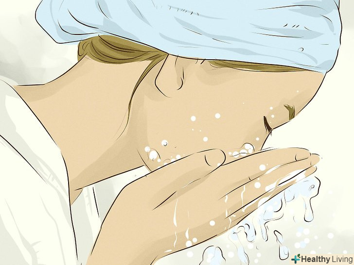 ВмивайтесяМ'яким засобом і наносите зволожуючий крем щодня. вмивайтеся вранці після пробудження і ввечері перед відходом до сну, щоб очистити шкіру від бруду, яка провокує утворення вугрової висипки, і шкірного сала. Акуратно протирайте обличчя м'яким рушником, потім наносите тонкий шар легкого крему для обличчя, щоб шкіра була зволоженою і свіжою. [3]- Використовуйте засіб, спеціально призначений для вмивання обличчя. Шкіра на обличчі більш чутлива в порівнянні зі шкірою тіла, тому звичайне мило може виявитися занадто агресивним.