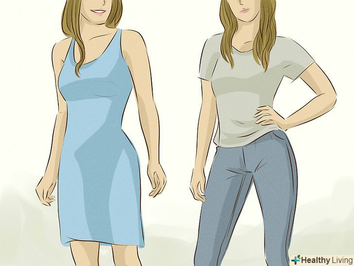 Доповнюйте нарядАксесуарами . коли одягнетеся, постарайтеся доповнити образ аксесуаром: красивим намистом, браслетом, сумочкою. Симпатичний аксесуар дозволить зробити ваш образ більш модним і закінченим. [12]- Можна використовувати аксесуари для волосся: обруч, шпильки, банти.