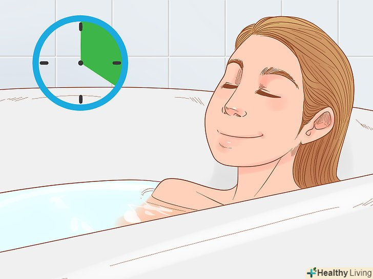 Не поспішайте залишати ванну. оптимальний час для розслаблення у ванні становить не менше 20 хвилин. Полежіть у ванні приблизно 10 хвилин, щоб позбутися від бактерій і розмочити шкіру. Це допоможе відкрити пори для більш глибокого очищення всього тіла. [6]- Проведіть у ванні необхідний час, щоб гарненько відмитися.