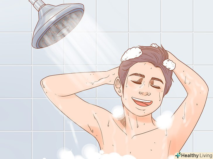 Використовуйте м'яку щітку або мочалку, щоб відлущити шкіру. так ви позбудетеся від мертвих клітин шкіри, зробивши її м'якою і гладкою. Починайте з плечей круговими рухами і спускайтеся у напрямку до ніг. Не потрібно терти шкіру занадто сильно, так як це може спровокувати роздратування. Мінімального тиску буде цілком достатньо. Вибирайте очищаючі засоби з отшелушивающим дією, які містять морську сіль, цукор, подрібнений мигдаль, горіхи, насіння або інші зернисті компоненти. [7]- Для відлущування можна використовувати такі допоміжні пристосування, як губки, мочалки, пемзу, м'які щітки або спеціальні рукавички.