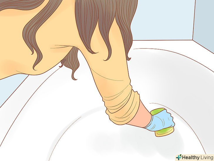 Очищення ванни. чиста ванна – запорука чистої води в ній. Вам потрібно змішати 3 склянки гарячої води і 1 склянку миючого засобу в розпилювачі. Нанесіть розчин на всю поверхню ванни і пройдіться по ній спеціальною щіткою на довгій ручці, яку можна придбати практично в кожному господарському магазині. Також вам можуть стати в нагоді наступні предмети. [1]- Захисні рукавички