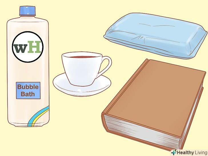 Візьміть все, що вам потрібно для прийому ванни. Ви можете просто полежати в теплій воді або додатково розслабитися і почитати книгу, тому приготуйте всі необхідні предмети заздалегідь.- Піна для ванни-відмінний спосіб зробити купання більш захоплюючим.