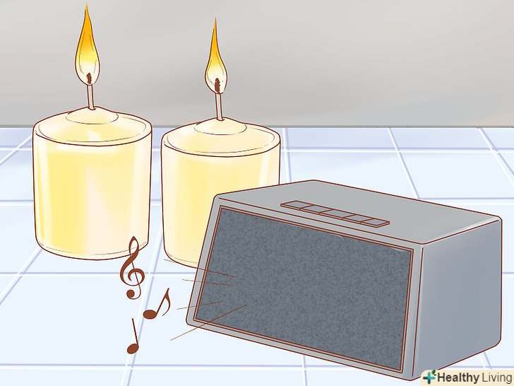 Створіть розслаблюючу атмосферу. під час прийому ванни вам потрібно залишити за дверима всі переживання і напруга, що накопичилося. Запаліть свічки, приглушіть світло або включіть приємну музику, щоб створити відповідний настрій.- Використовуйте різні види музичних композицій, призначених спеціально для розслаблення. [3]