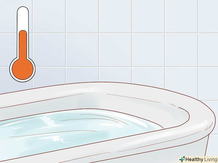 Вода повинна бути теплою, але не гарячою. якщо вода у ванній занадто гаряча, це може викликати зниження кров'яного тиску, запаморочення і зниження координації, нудота, висушування шкіри і подальше зневоднення. Тепла вода дозволяє розслабитися і при цьому не ризикувати. [4]- Якщо ви не можете зрозуміти, наскільки комфортна температура води, то можна купити гумову качечку для контролю температури. Вона оснащується індикатором, який змінює свій колір при занадто високій температурі води. Купити такий предмет можна в магазині дитячих іграшок.
