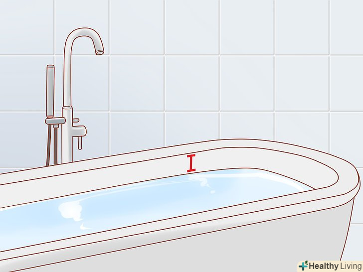 Наберіть у ванну правильну кількість води. не потрібно переповнювати ванну, щоб вода не розплескалася на підлогу. Пам'ятайте, що при зануренні тіла в ємність обсяг води збільшується, тому половини ванни буде цілком достатньо. Якщо ви використовуєте піну, то завдяки цьому рівень води виявиться ще вище.- Пам'ятайте, що ви завжди можете додати необхідну кількість води.