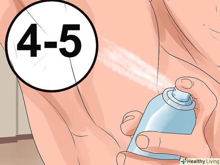 Розпиліть дезодорант тонким шаром. розпилюйте дезодорант протягом 4-5 секунд. Дрібні частинки спрею повинні покрити шкіру пахви повністю.- Будьте обережні, щоб спрей не потрапив в очі.