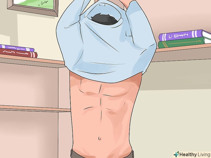 Зніміть футболку. так дезодорант точно не потрапить на одяг. Якщо ви не в змозі зняти футболку повністю, то просто потягніть рукава так, щоб відкрити пахви.