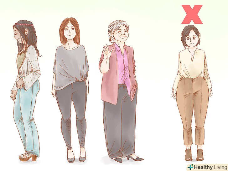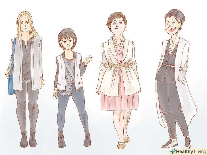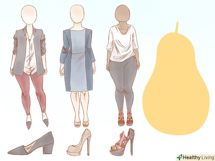 - Фігура типу «груша» відрізняється у кожної окремої жінки, так що те, що йде однієї, може виглядати не так вже вдало на інший. Приміряйте різні стилі одягу, щоб дізнатися, що йде вам найбільше.