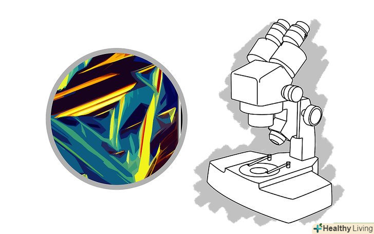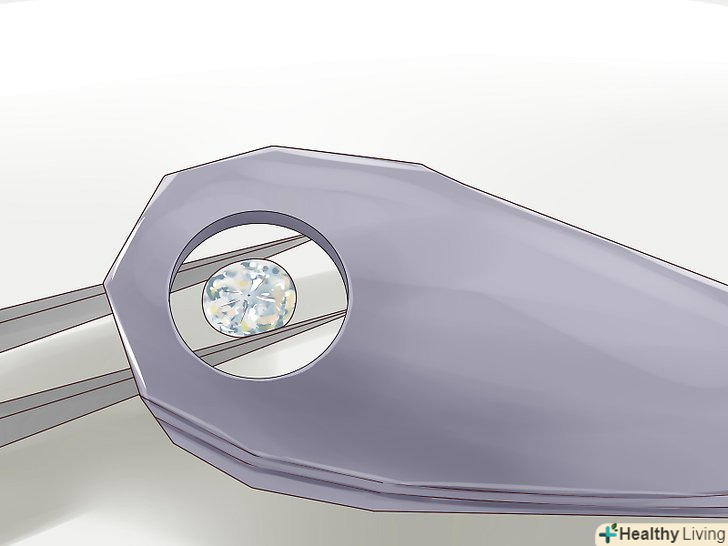 Проведіть дослідження за допомогою мікроскопа. покладіть діамант верхньою гранню вниз. Акуратно покачайте його вперед назад за допомогою пінцета. Якщо ви побачите невелике помаранчеве сяйво вздовж грані, то насправді це може бути фіаніт. Так само може виявитися, що фіаніт був використаний для усунення дефекту в Діаманті. [6]- Для досягнення кращого огляду використовуйте мікроскоп з збільшення в 1200 крат.