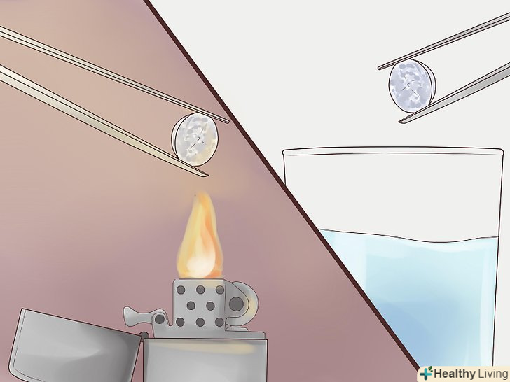 Нагрійте камінь і подивіться не розсиплеться він на осколки. нагрійте камінь запальничкою протягом 30 секунд, а потім киньте його в склянку з холодною водою. Швидке розширення і стиснення перевищить межу міцності слабких матеріалів, таких як кришталь або кварц, в результаті чого камінь зруйнується зсередини. Справжній діамант дуже міцний, тому з ним нічого не трапиться.