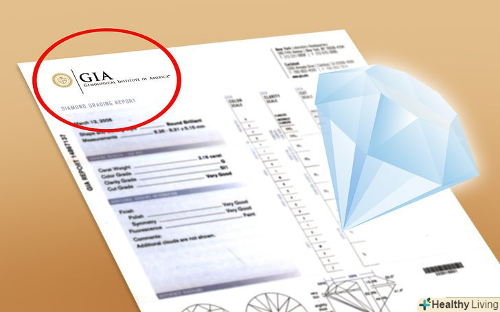 Подивіться на ваш сертифікат уважно – не всі сертифікати рівноцінні за значимістю. сертифікат повинен належати до авторитетної класифікації (такої як GIA, AGSL, LGP, PGGL) [12] або бути виданим незалежним оцінювачем, який складається в професійній організації (наприклад такий як Американська асоціація оцінювачів), але не роздрібним торговцем.- У сертифікаті вказується багато інформації про ваш діамант, такий як вага в каратах, розміри, пропорції, ступінь прозорості, ступінь кольору, огранювання.