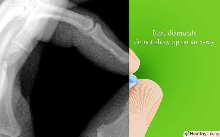 Зробіть рентген. Діаманти мають "рентгенопрозору" молекулярну структуру. Це означає, що вони не виявляються на рентгенівському знімку. Скельця, фіаніт і кришталь мають злегка «рентгеноконтрастні» властивості, що робить їх видимими в рентген променях.- Якщо ви хочете провести перевірку за допомогою рентгена, то вам потрібно передати камінь в професійну лабораторію з перевірки діамантів або домовитися з місцевим рентген центром.