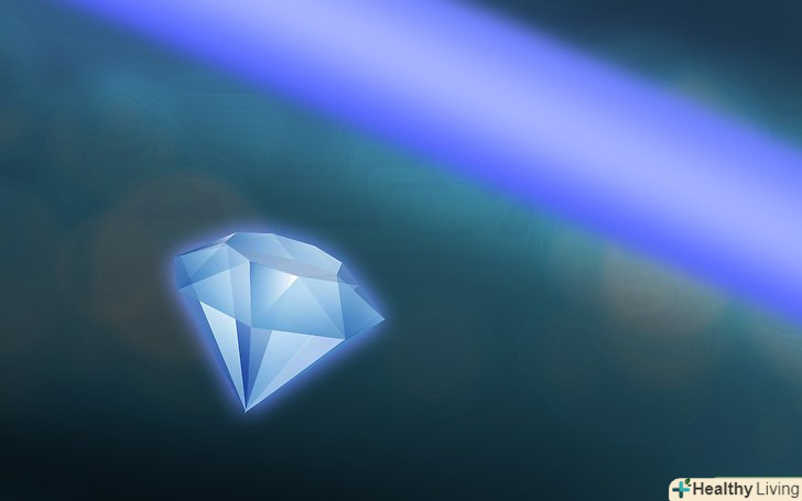Перевірте діамант в ультрафіолетових променях. багато (але не всі) діаманти будуть випромінювати синє світіння в ультрафіолетових або інфрачервоних променях. Тому, якщо світіння середнє або сильне, то це підтверджує його справжність. Відсутність синього світіння не обов'язково означає, що камінь підроблений. Деякі Діаманти не світитися в ультрафіолетовому світлі. [8] невелике світіння зеленого, жовтого або сірого кольору в ультрафіолетових променях може означати, що це муссаніт. [9]- Перевірка в ультрафіолетових променях, можливо, може допомогти вам звузити вибір, однак намагайтеся уникати прийняття рішення про справжність діаманта спираючись тільки на результат цього тесту. Як зазначено вище, деякі Діаманти світяться в ультрафіолетових променях, а деякі ні. Також можливо, що підробка чимось покрита, оброблена, щоб світитися в ультрафіолетових променях. [10]