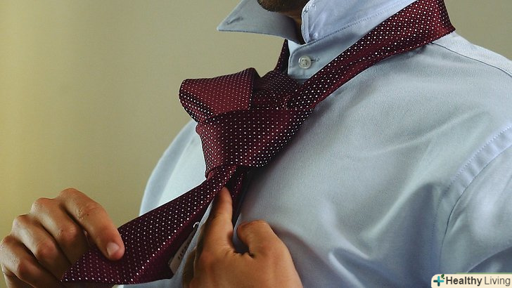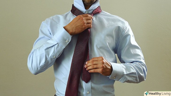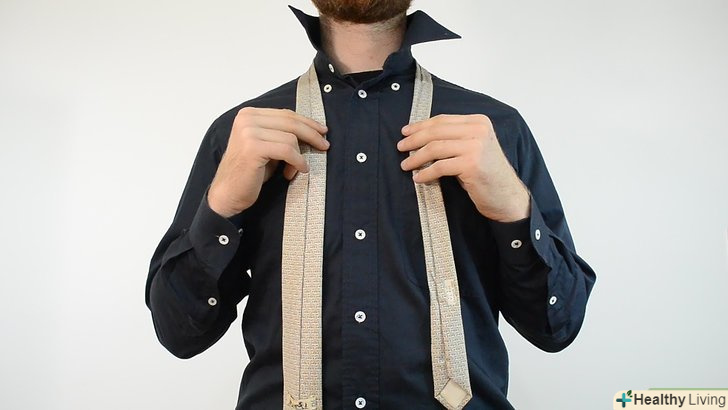 - Встаньте перед дзеркалом. підніміть комір. Всі гудзики сорочки повинні бути застебнуті. Накиньте краватку навколо шиї. Широкий кінець краватки повинен бути з боку домінуючої руки. Тобто, якщо ви правша, широкий кінець краватки повинен знаходитися у вас праворуч, і навпаки, якщо ви лівша - зліва.