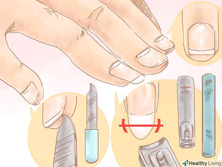 - Підрізайте нігті спеціальними щипцями або манікюрними ножицями. Зрізайте нігті уздовж, а потім скругляйте краю, щоб вони не залишалися гострими. [11]