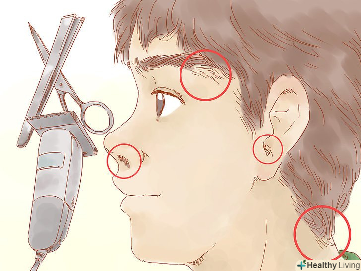 Підрізайте волосся у вухах, в носі і на шиї. Не має значення, чи носите ви бороду або голитеся, — вам в будь-якому випадку варто стежити за довжиною волосся в інших місцях. Підрізайте волосся в ніздрях, у вухах і на них, а також на нижній частині шиї (під лінією росту волосся на голові).- Час від часу підрізайте брови, щоб вони не ставали неохайними. [14]