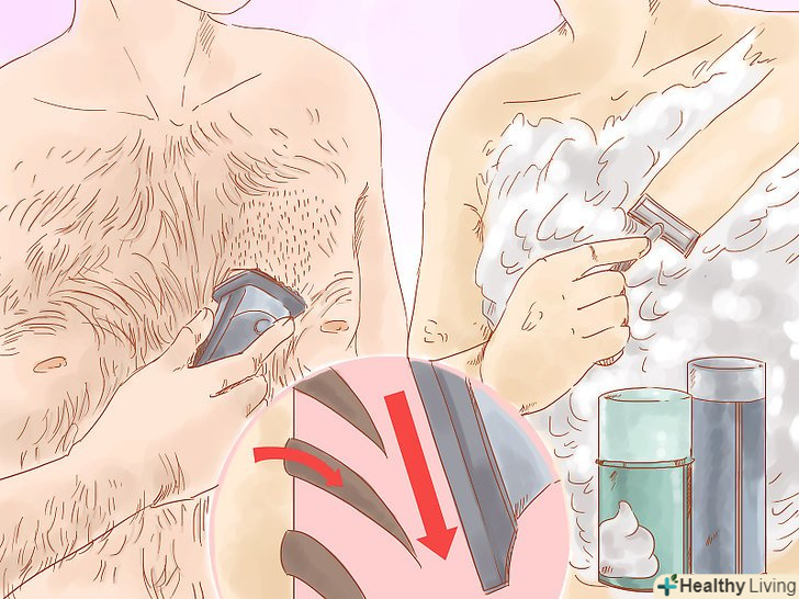 - Якщо ви хочете, щоб груди були гладкими, можна або зістригти волосся тримером без насадки, або збрити волоски бритвою з гелем для гоління.