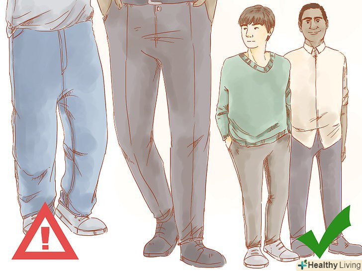 Купуйте штани, які сидять по нозі. такі штани виглядають більш ошатно, впевнено і привабливо в порівнянні з мішкуватими штанами. Збираючись на роботу або на вечірку, вибирайте облягаючі штани або джинси, щоб виглядати привабливіше. [21]