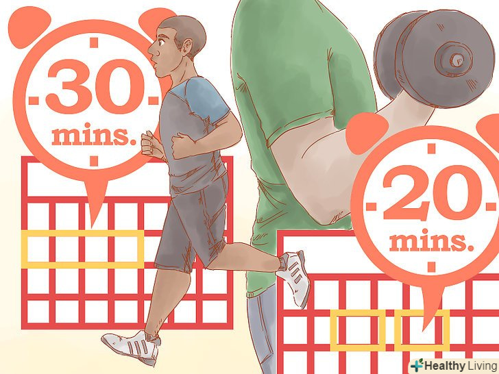 Регулярно займайтеся спортом. регулярні заняття спортом допоможуть вам виглядати і відчувати себе відмінно. Ефективна програма тренувань повинна складатися з інтенсивної кардионагрузки і регулярних силових навантажень. [23]- Намагайтеся виділяти на кардіонавантаження не менше 30 хвилин 4 рази на тиждень.