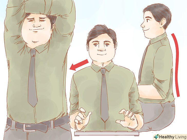 Слідкуйте за поставою. можливо, зазвичай ви не замислюєтеся про це, однак те, як ви сидите і стоїте, багато говорить про вашу самооцінку і впевненості в собі. З часом погана постава також призводить до проблем з шиєю і спиною.- Регулярно робіть паузи для розтяжки на роботі і вдома. Вставайте, потягуйтеся і розпрямляйте плечі як мінімум пару хвилин кожні півгодини. Намагайтеся частіше ходити і розминатися. [24]