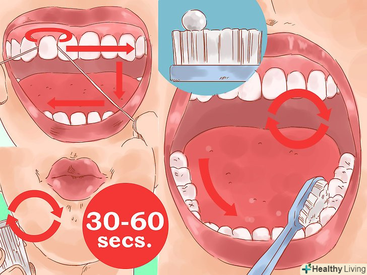 Доглядайте за зубами. слід чистити зуби щіткою і ниткою щодня не менше двох разів на день. Ретельний догляд за зубами дозволить уникнути неприємного запаху з рота і буде корисний для здоров'я і краси зубів.- Відмотайте 40-50 сантиметрів нитки і почистіть проміжки між зубами, починаючи з верхніх задніх зубів і спускаючись вниз. Обхоплюйте кожен зуб ниткою, щоб почистити всю поверхню, в тому числі задню. [5]