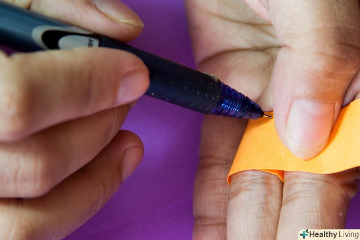 Оберніть паперову смужку або шматок нитки навколо найширшої частини пальця, розмір якого хочете виміряти. переконайтеся, що смужка або нитка охоплюють палець щільно, але не дуже туго.