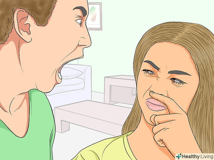 Слідкуйте за гігієною порожнини рота. неприємний запах з рота в першу чергу впливає на загальний неприємний запах тіла. З цієї причини слід чистити зуби не рідше одного разу на день (а ще краще двічі), регулярно користуватися зубною ниткою і антисептичним ополіскувачем для порожнини рота. Чим чистіше полоти Рота, тим менше ви будете хвилюватися про те, щоб не відлякати людину під час розмови лицем до лиця. [14]- Чистити зуби слід близько двох хвилин, захоплюючи всю поверхню зубів і верх язика.