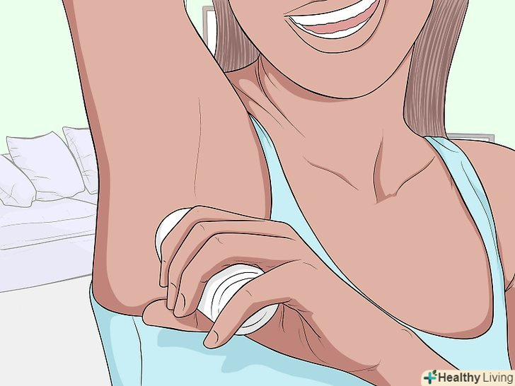 Використовуйте антиперспірант. вранці перед виходом з дому слід обробити пахвові западини стійким антиперспірантом. Така порада здається очевидним, але факт в тому, що досить часто неприємний запах виникає саме в пахвовій області. Щодня використовуйте антиперспірант, щоб захистити себе від неприємних сюрпризів. [12]- Антиперспірант і дезодорант — це не одне і те ж. Дезодорант допомагає впоратися з запахом в пахвовій області, але не захищає від поту, який є основною причиною такого запаху. [13]