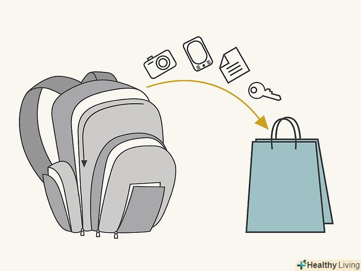 Дістаньте з рюкзака всі речі. приберіть з рюкзака всі речі, які можуть зіпсуватися від води під час прання. Для видалення сміття і крихт з щілин всередині рюкзака спробуйте вивернути його назовні і використовувати пилосос на малій потужності. [5] після видалення сміття пилососом залиште всі кишені рюкзака відкритими, щоб вони краще випралися.- Щоб не втратити зберігаються в рюкзаку речі, складіть їх в невеликий поліетиленовий пакет і помістіть його в безпечне місце.