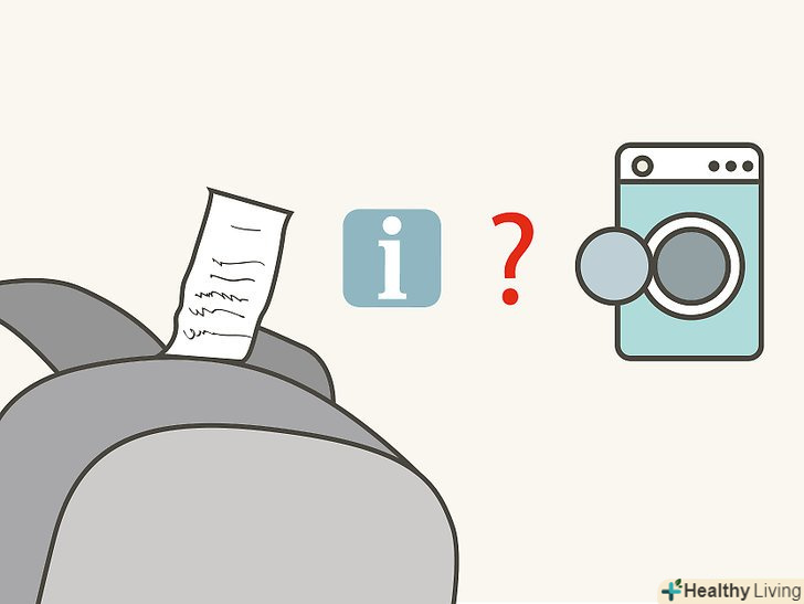 Прочитайте інформацію на ярлику. завжди дотримуйтесь інструкцій по догляду за рюкзаком (якщо вони вказуються), щоб не пошкодити його під час прання. Ярлики з вказівками по догляду зазвичай пристрочені до бічного шву всередині рюкзака, найчастіше в головному відділенні. Як правило, на них містяться рекомендації з прання і сушіння рюкзака.- Деякі хімічні засоби і способи очищення можуть пошкодити рюкзак (наприклад, знизити вологостійкість), тому настійно рекомендуємо дотримуватися інструкції по догляду.