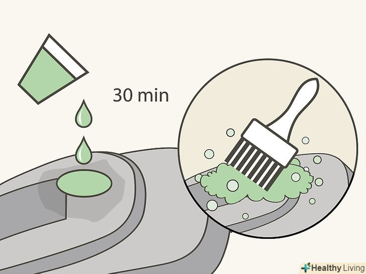 Попередня обробка плям. особливо брудні ділянки слід обробити засобом для виведення плям, але не використовуйте відбілювач. М'якою щіткою (стара зубна щітка) нанесіть засіб на плями і залиште на півгодини. Так ви зможете видалити практично будь-які плями під час основного прання.- Якщо у вас немає засобу для попередньої обробки, то нанесіть щіткою розчин, який складається з рідкого миючого засобу і води в пропорції 50:50.