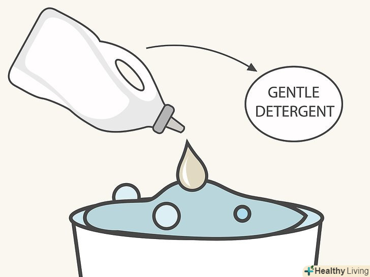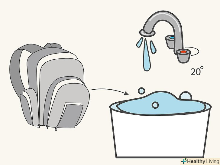 Наповніть теплою водою велику миску або ванну. також можна використовувати велику раковину. Вам буде потрібно дійсно багато місця, щоб ретельно випрати всі кишені і відділення рюкзака.- Не використовуйте гарячу воду, інакше матеріал може злиняти.