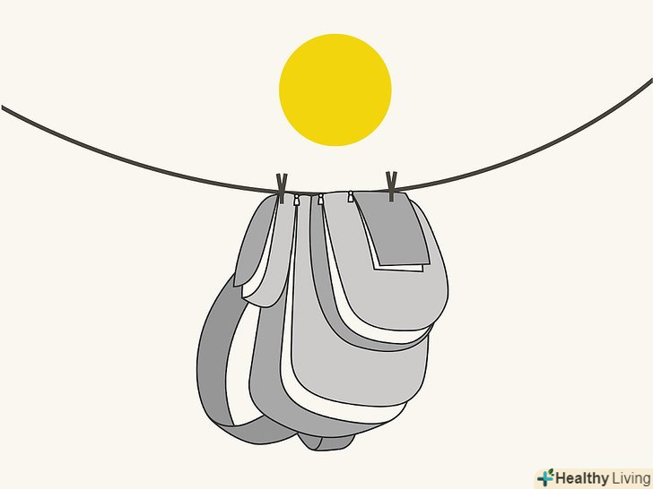 Висушіть рюкзак. краще просушити його природним чином на вулиці або в приміщенні, а не використовуючи сушильну машину. Не закривайте кишені для рівномірного висихання всіх відділень.- Перед використанням або прибиранням в шафу необхідно переконатися, що рюкзак повністю висох. Якщо залишити рюкзак вологим, то в ньому може утворитися цвіль.