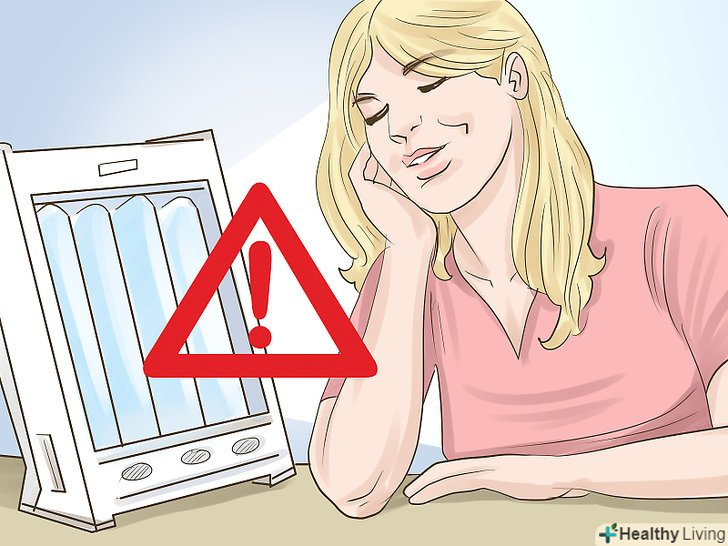 Не купуйте в будинок лампи для засмаги. це ще один варіант, який багато людей вважають більш безпечним, ніж засмага на сонці. Однак вони так само, як солярії і сонце, виробляють шкідливе випромінювання. Крім того, оскільки їх можна використовувати вдома кожен день (навіть взимку), можливо, ви будете відчувати спокусу користуватися ними частіше, ніж іншими варіантами, а це ще більше зашкодить шкіру. [12]