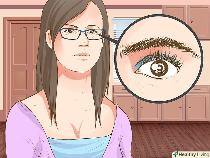 Надайте форму брів. окуляри задають форму особі, і те ж саме роблять брови. Зробіть корекцію брів в салоні або самостійно, щоб брови виглядали доглянуто. Лінія брів повинна виявитися вище оправи, так що доглянуті брови будуть добре помітні. [11]- Піднесіть щипці для брів до внутрішнього куточка ока і прикладіть до брови. Потрібно вищипати брови так, щоб вони починалися прямо над куточками очей. [12]