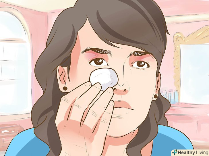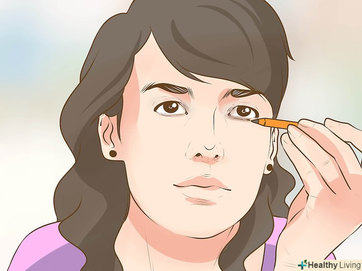 Приховайте консилером або хайлайтером темні ділянки. щоб очі не виглядали запалими, нанесіть трохи крему з хайлайтером на внутрішні куточки очей і на нижні повіки. Консилер одного тону зі шкірою освітлить ділянки під очима, і тінь від лінз не зіпсує ваш образ.- Не наносьте багато косметики на нижню повіку і область навколо нього, щоб не притягувати увагу до мішків під очима і до дрібних зморшок. [10]