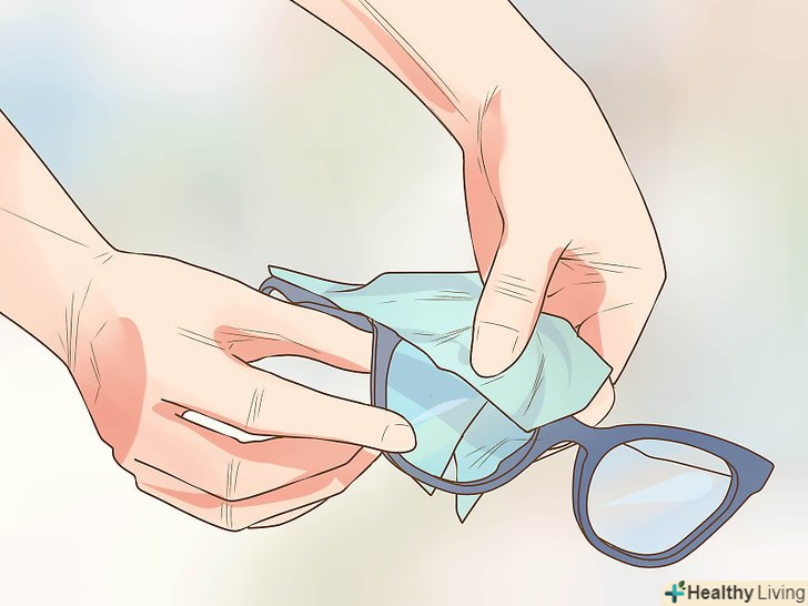 Очищайте окуляри кожен день. це не тільки дозволить вам краще бачити, але і позбавить від брудних розлучень. Навіть якщо ви добре одягнені і нафарбовані, брудні окуляри зможуть зіпсувати весь вигляд. Наносите на лінзи спеціальний очищаючий розчин і протирайте їх серветкою з мікрофібри. [16]- За допомогою серветки можна прибрати зі скла сліди пальців.