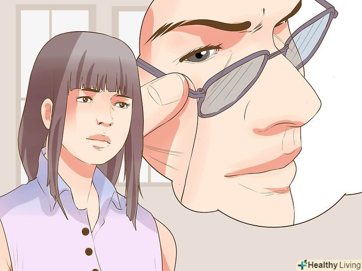 Приміряйте окуляри. окуляри, які здаються занадто великими або маленькими на обличчі, не зроблять вас привабливішими, тому потрібно виміряти всі відстані. Краї стекол повинні знаходитися навпроти зовнішнього краю особи. Якщо окуляри занадто великі, вони будуть ширше найширшої частини обличчя. [3]- Посувайте оправу на носі. Якщо окуляри занадто маленькі, вони залишать на носі сліди, а занадто широка оправа буде спадати з особи.