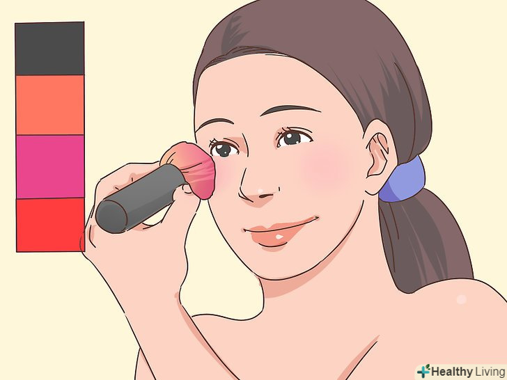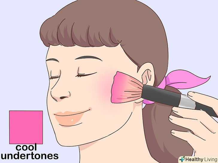 - Якщо у вас середній тип шкіри або засмага, спробуйте використовувати абрикосові, оранжево-персикові, рожево-лілові або ягідні відтінки рум'ян. [29]
