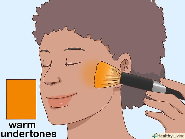 Якщо у вас теплий тон шкіри, Виберіть рум'яна помаранчевих відтінків. найкращим вибором для вас стануть насичені осінні тони, які додадуть сяйво вашій шкірі.- Якщо у вас світла або бліда шкіра, зупиніть вибір на світло-персикових рум'янах. [27] також можна спробувати бронзові відтінки. [28]