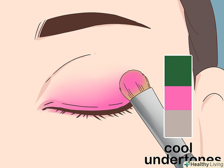 Підберіть такі кольори тіней, які додадуть тепла вашому холодного тону шкіри. якщо ви перестараєтеся з холодними квітами, то будете виглядати дуже блідо. Замість цього додайте своїм рисам трохи тепла, не створюючи при цьому надмірного контрасту.- Якщо у вас бліда шкіра, спробуйте використовувати прозорі відтінки сіро-коричневого, рожевого і зеленого кольору. [34]
