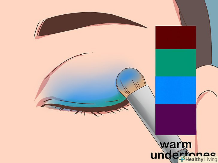 Підкресліть теплий тон шкіри тінями насичених кольорів. якщо у вас теплий тон шкіри, Оживіть його більш насиченими тінями, які збагатять тон вашої шкіри. [37]- Для світлої шкіри добре підійдуть тіні природних (з відтінками коричневого) і бронзових тонів. [38]
